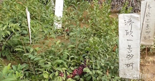 这五个品种来源与泰山的灌木生长品种,这种灌木果实在他的基地里栽培的有原种。这种野生果实最大的缺点就是在地上爬着生长,立不起来,并且成熟期也不稳定,但它的果肉很有特点及口感好,含钙物质很高,非常具备嫁接和改良价值。所以周建忠发现以后,将灌木果从泰山移到他的基地,把它作为母本嫁接在桃树上,李子树上,梨树上,杏树上,毛樱树上。