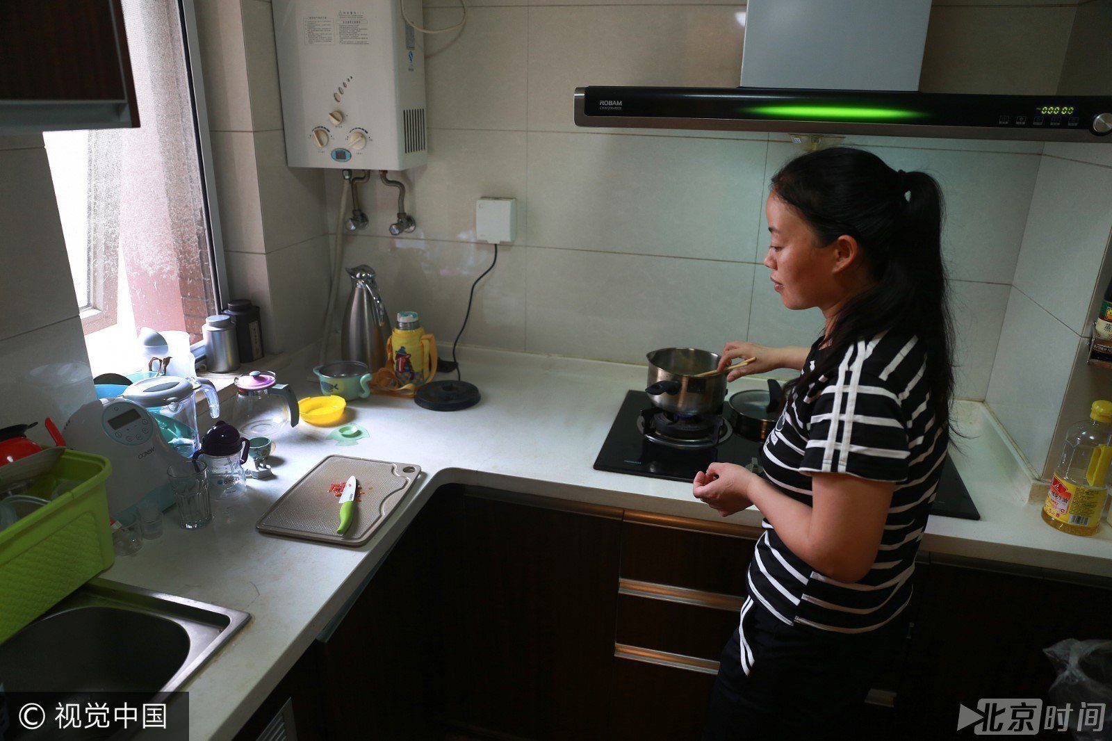 中午饭一般都在雇主家吃,饭后,王俊岭还要赶到下一家。每年暑假,王俊岭夫妇都会把孩子接到北京,每到这个时候,她都会辞去一户雇主,抽出时间多陪陪孩子。由于过早的独立生活,两个孩子小小年纪就已经学会了做饭。王俊岭中午来不及回家,兄妹俩就会自己煮面或者炒菜吃,晚上还会做好了饭等妈妈下班。